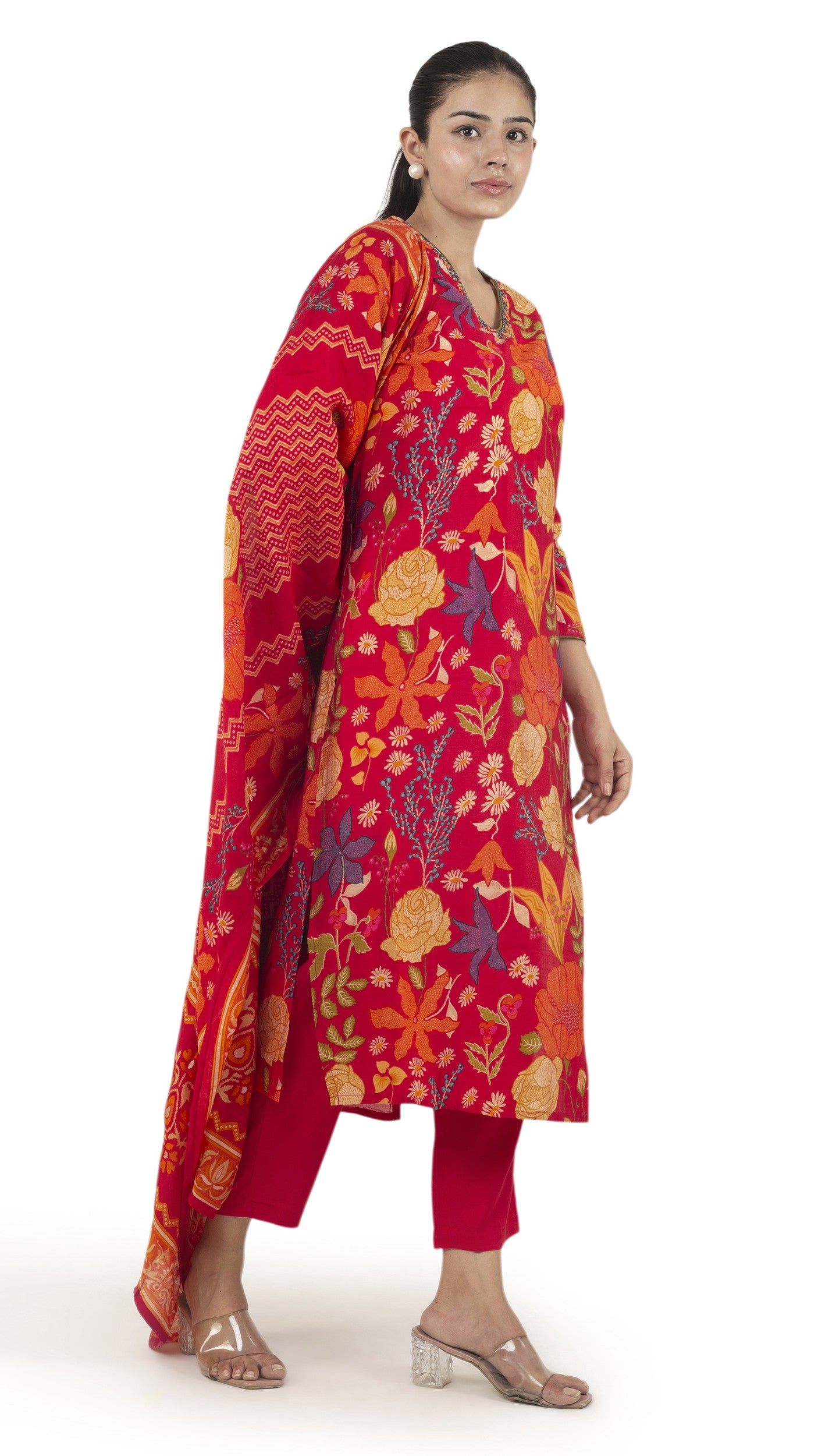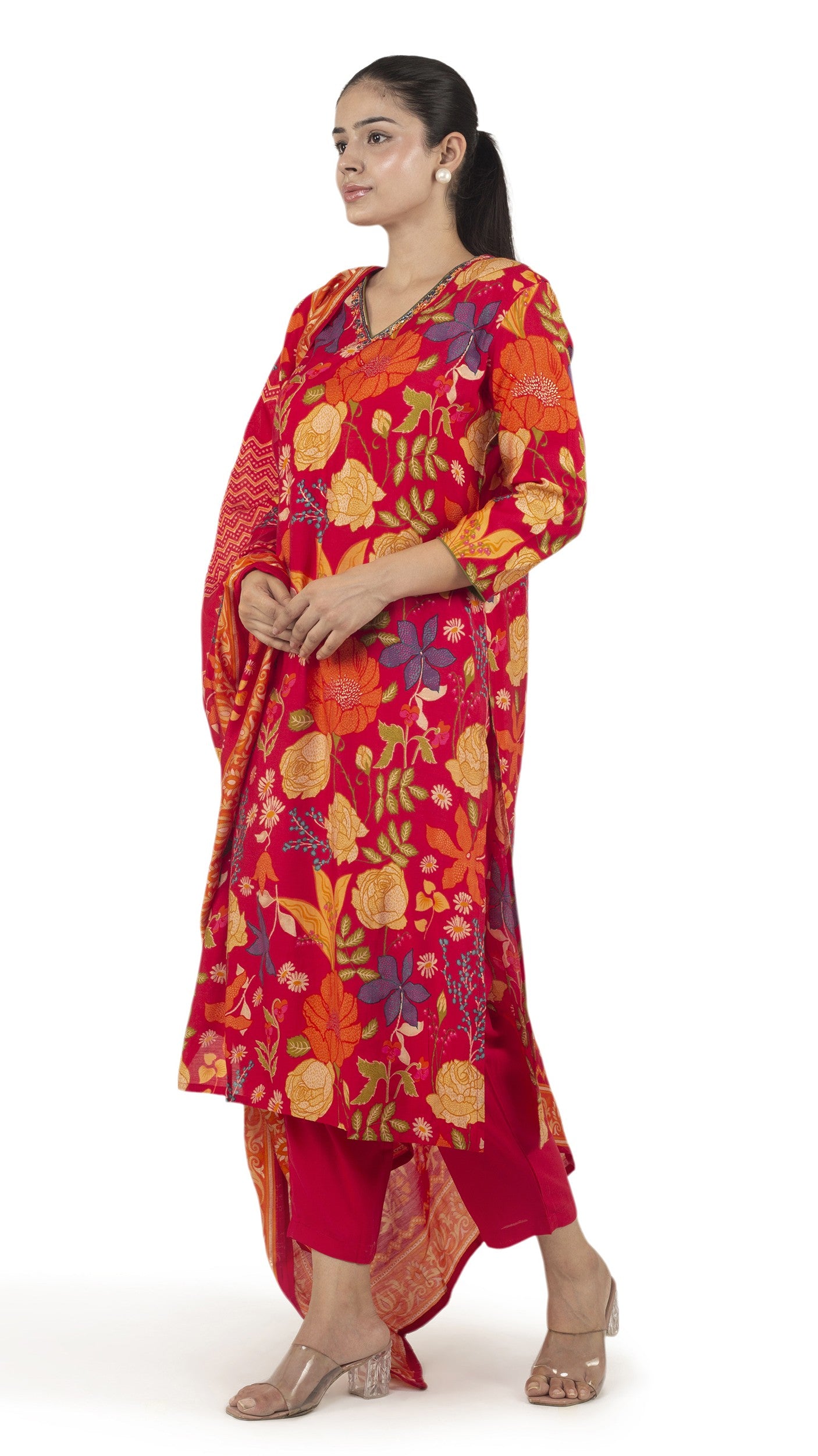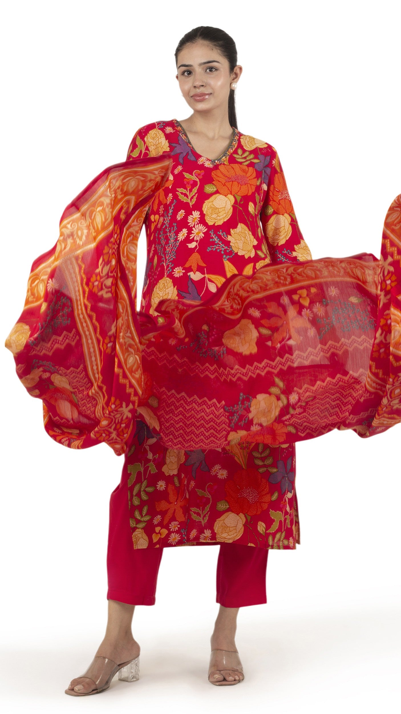 ๐—ฉ๐—ถ๐—ฏ๐—ฟ๐—ฎ๐—ป๐˜ ๐—ฅ๐—ฒ๐—ฑ ๐—™๐—น๐—ผ๐—ฟ๐—ฎ๐—น ๐—ฃ๐—ฟ๐—ถ๐—ป๐˜๐—ฒ๐—ฑ ๐—ž๐˜‚๐—ฟ๐˜๐—ฎ ๐—ฆ๐—ฒ๐˜ with Dupatta