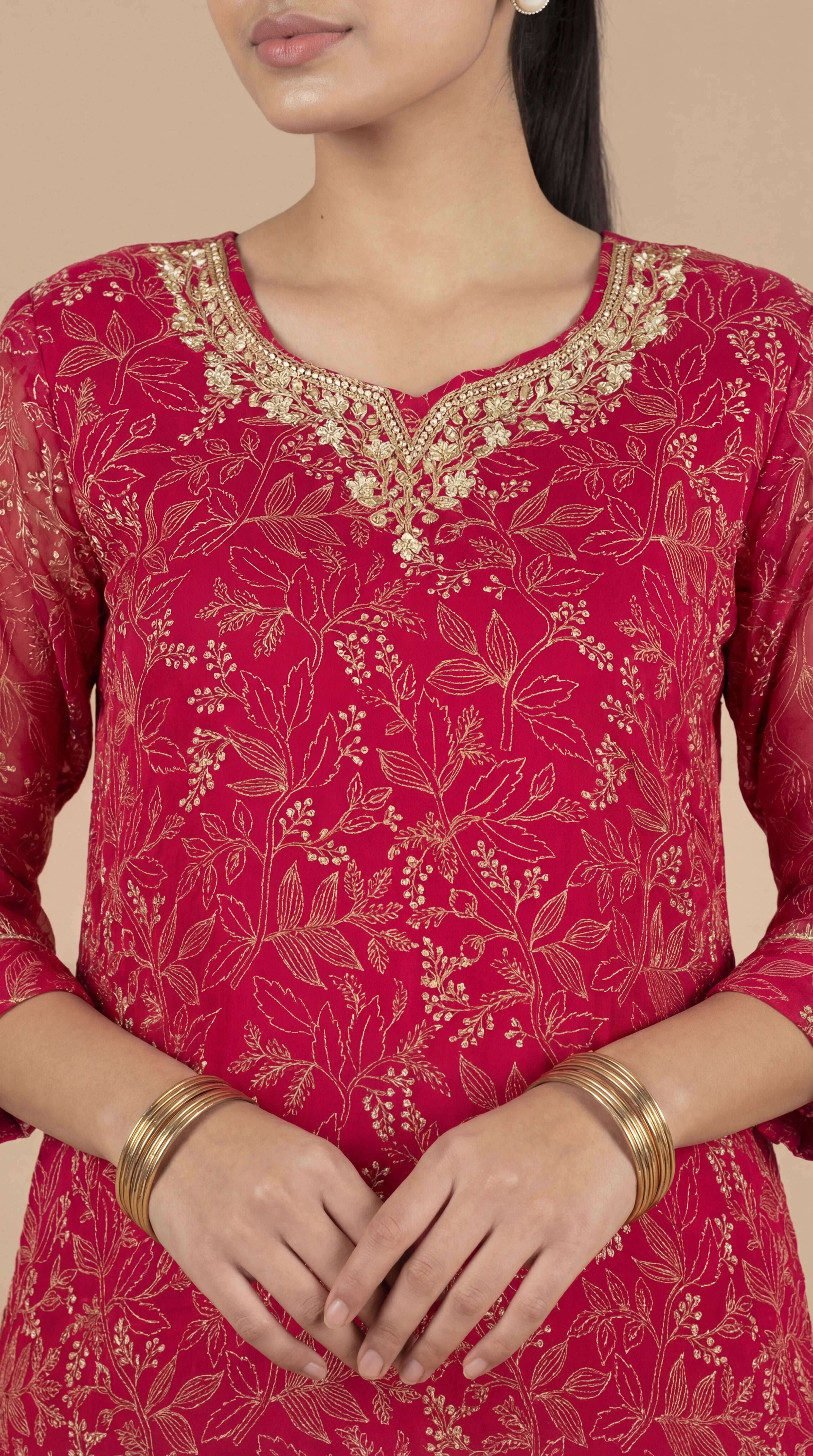 | Size | Bust | Waist | Hip | Shoulder | Kurta Length | Sleeve Length | Pant Waist | Pant Hip |